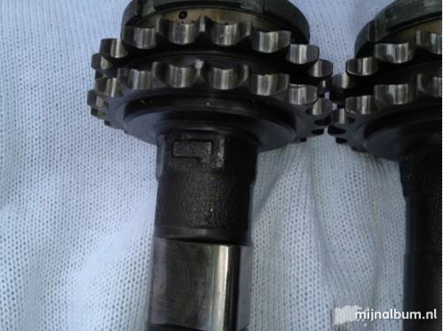 Voor de fijnproevers: er is een nauwelijks zichtbaar verschil in aanduiding van de linker en rechter nokkenassen. Linker nokkenassen hebben 2 kerven, één lang, één kort. Dat verschil zit ‘m slechts in een aanduiding met streepjes. Voor de rest zijn ze identiek en dus uitwisselbaar.